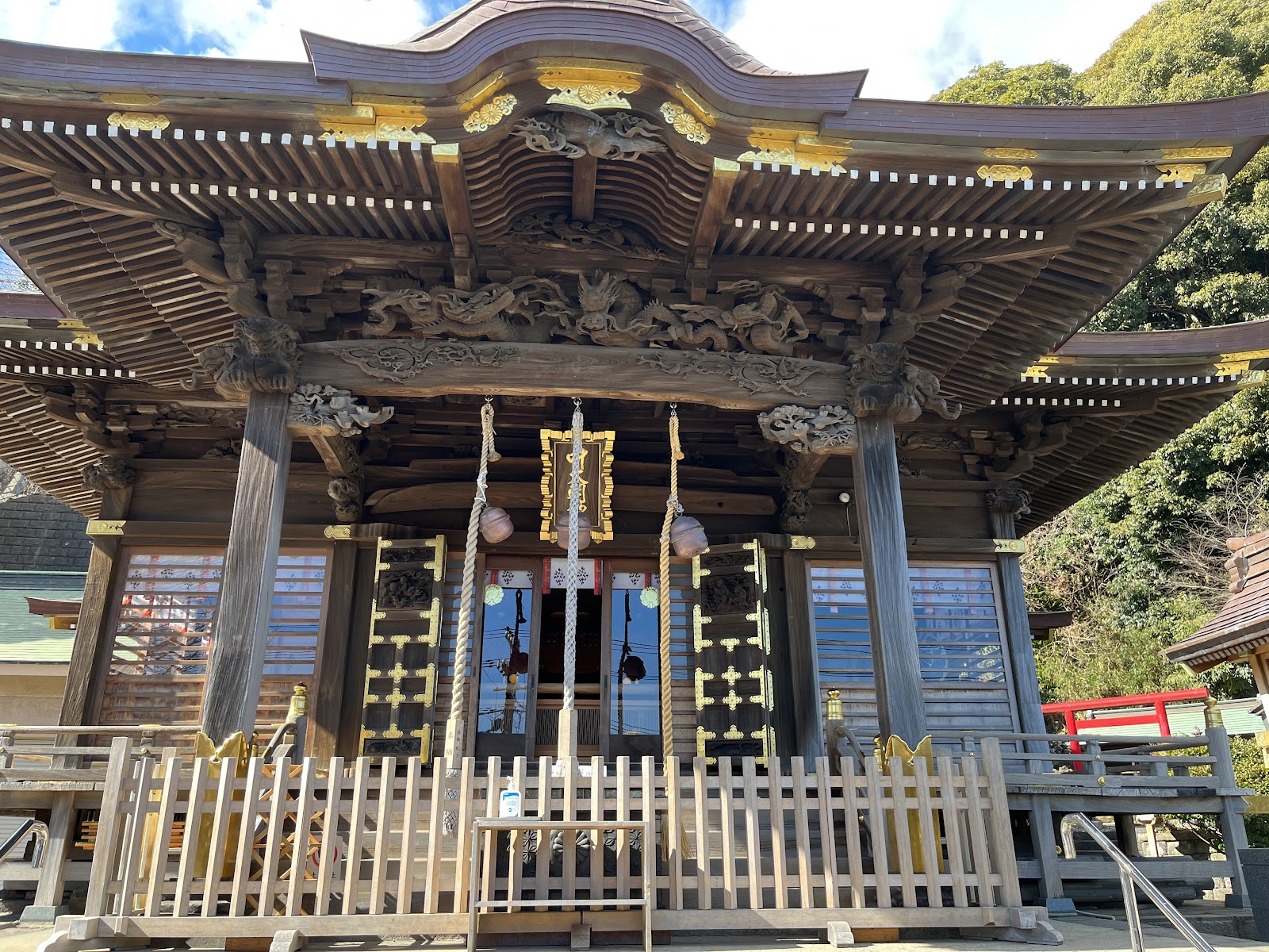 社殿を取り巻く総数230を超える彫刻は、安房国(現在の千葉県南部)を代表する彫刻師、後藤利兵衛義光の作品。当時の日本には渡来していなかった花や鳥も施されているそうです。とても美しいのでぜひじっくりと鑑賞してみてください。